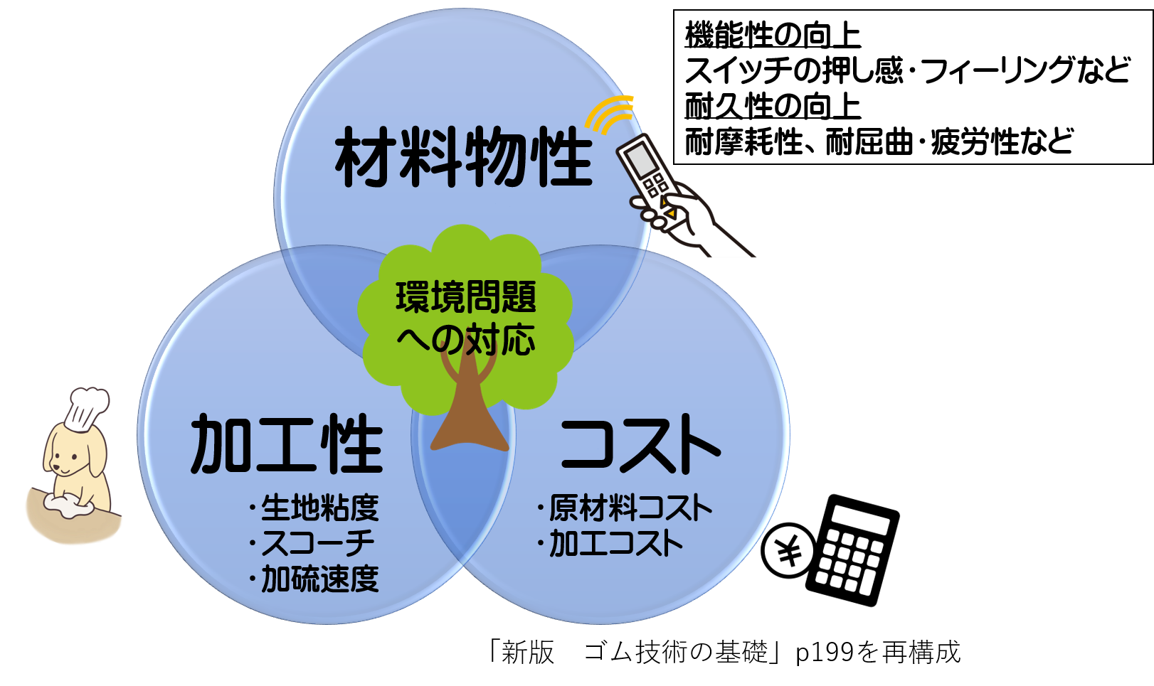 ①材用物性 ②コスト ③加工性 +環境問題への対応