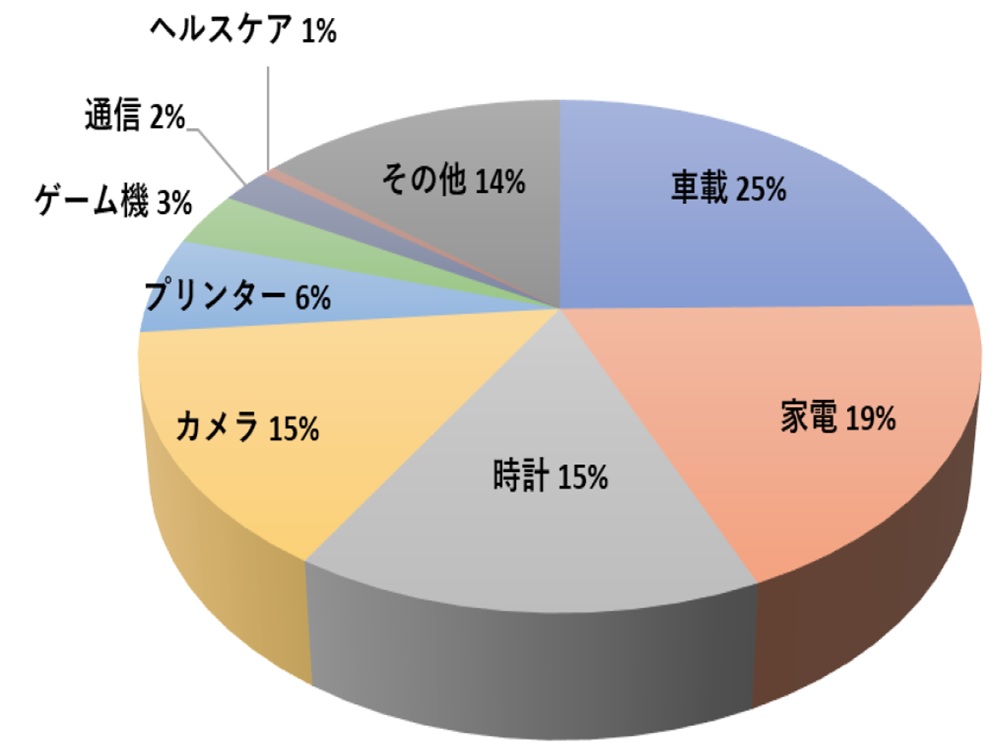 2023年度売上構成の約50%が車載、家電、時計部品で構成されております。